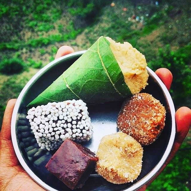 - Preparation: Khoya is roasted with sugar until it reaches a dark chocolate color, then set in a tray and coated with sugar balls.
